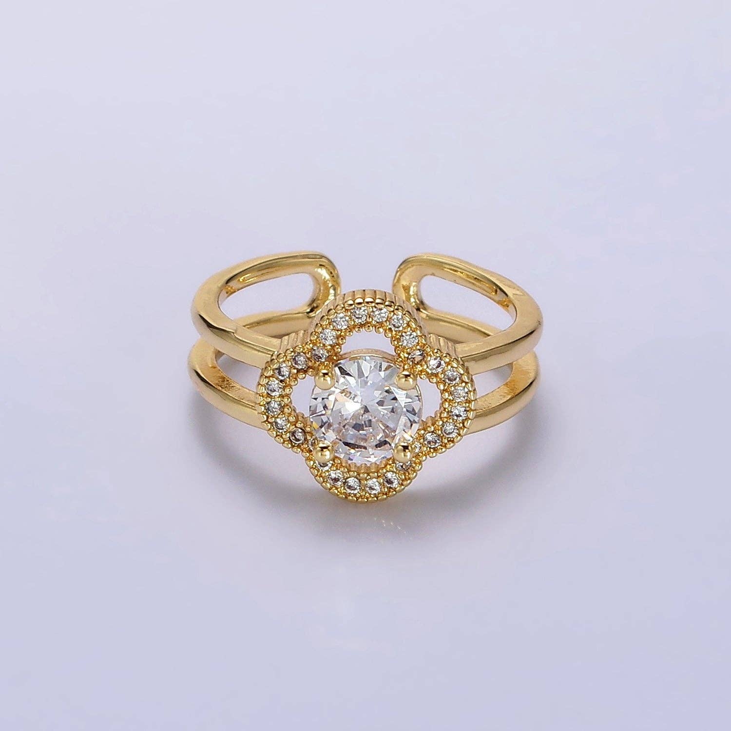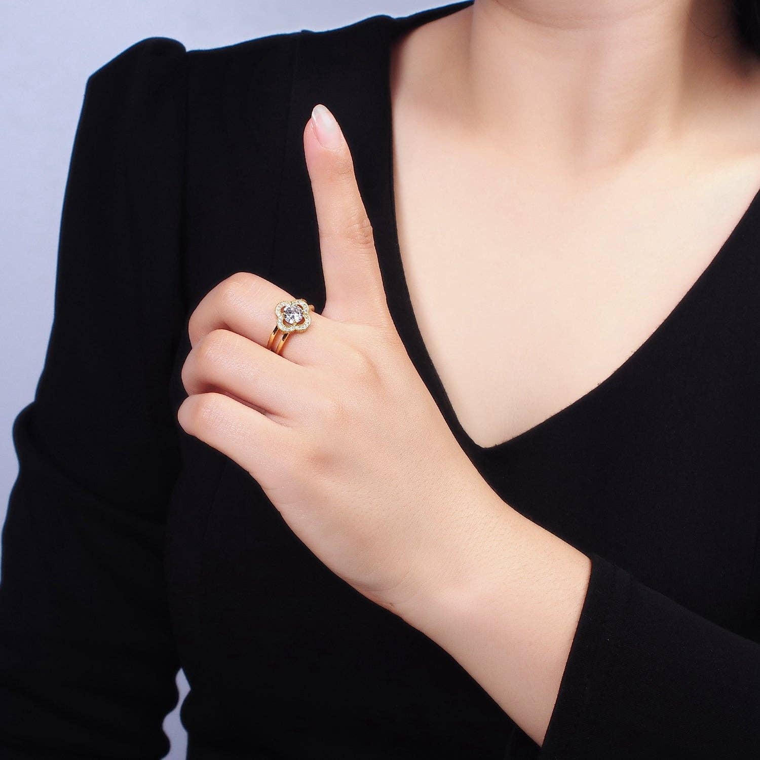 14K Gold Filled Quatrefoil Clover Double Band Ring