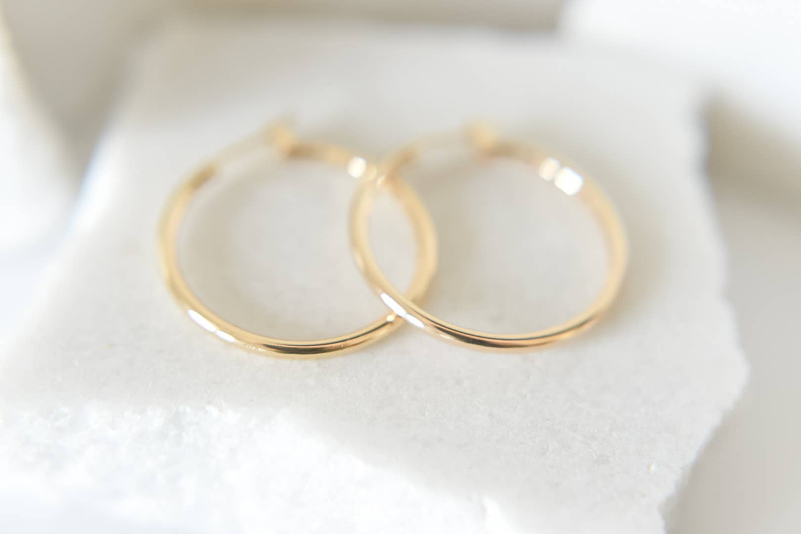 The Michelle gold hoop earrings -18k gold plated hoops -clasp closure -30mm diameter -hypoallergenic -nickel & lead free -light weight