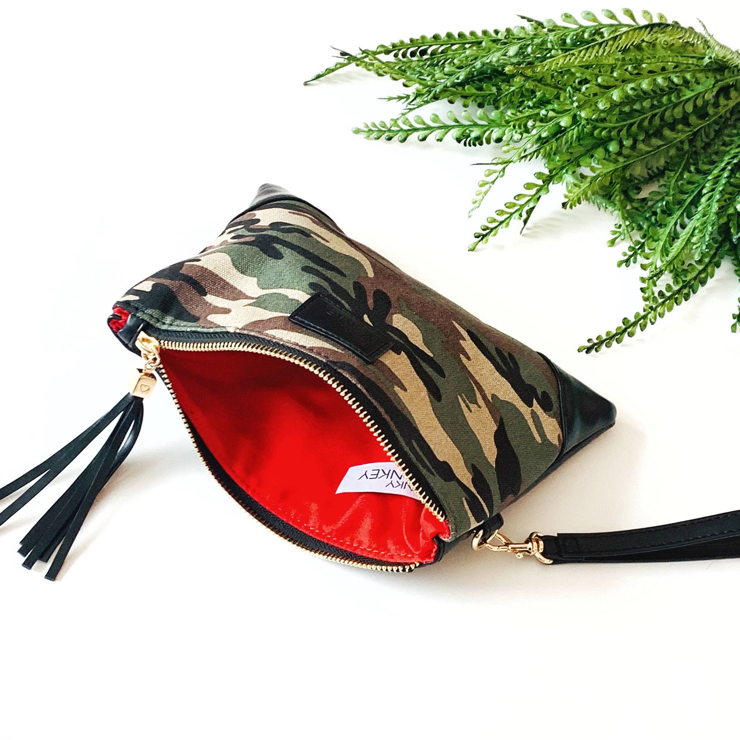 This wristlet handbag is perfect for carrying just the essentials. Wear it on your wrist or clip it to you belt loop for hands free shopping. You can attach it to larger bags, like totes, backpack and duffel bags to find important things easier. It’s also great for diaper bags, making Mommy’s things easy to find! Wristlet measures 6 inches tall by 9 inches wide Wrist strap is 10.5 inch loop Interior measures 5.5 inches deep by 8.5 inches wide