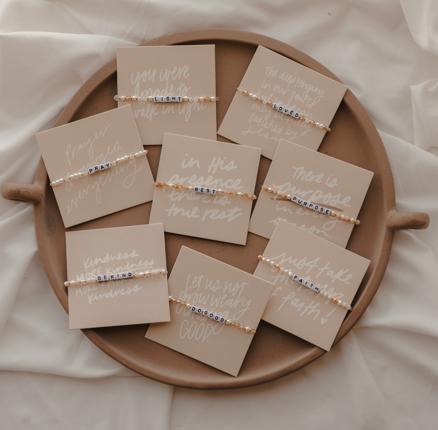 Be kind and compassionate to one another, forgiving each other, just as God forgave you. Ephesians 4:32 Size: 6.75" one size fits most. Details: -beaded stretch bracelet -verse reference on attached gold tag -Display Card with artwork and details on back