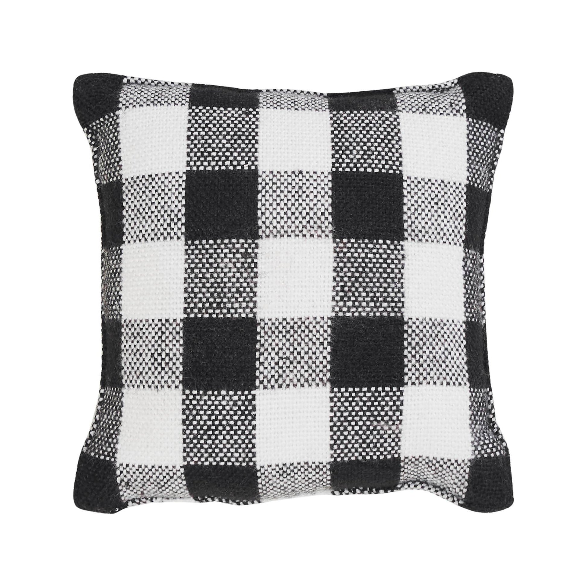 Infuse your living space with the heartwarming spirit of autumn with the Annie Black Check Home Pumpkin Pillow. Measuring a charming 6 by 6 inches, this plump accent pillow cradles a delightful message of 'Home' in classic script, beautifully complemented by a vibrant burnt orange pumpkin, evoking crisp fall days and cozy evenings.