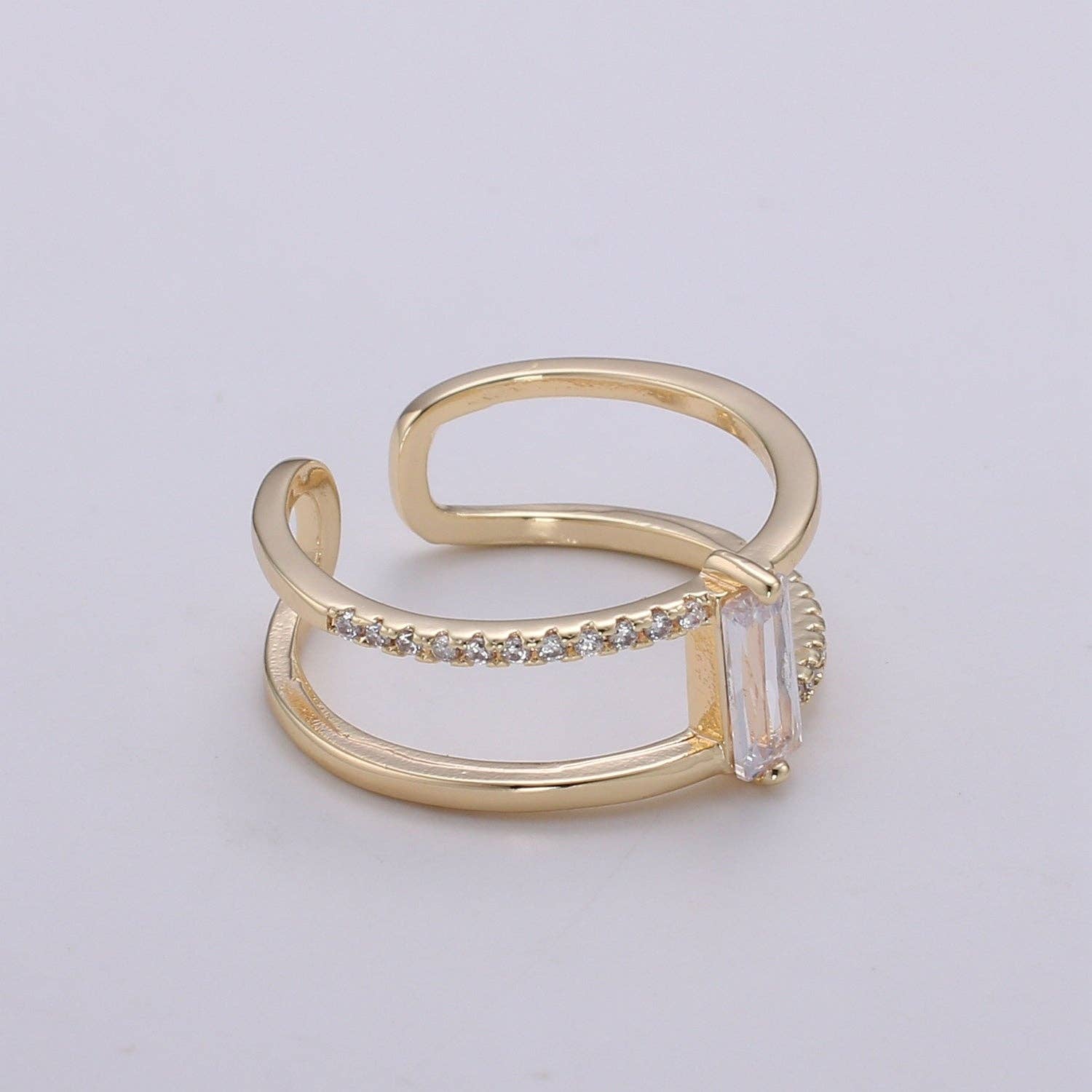 Gold Filled Double Band Baguette Micro Paved CZ Ring Y313