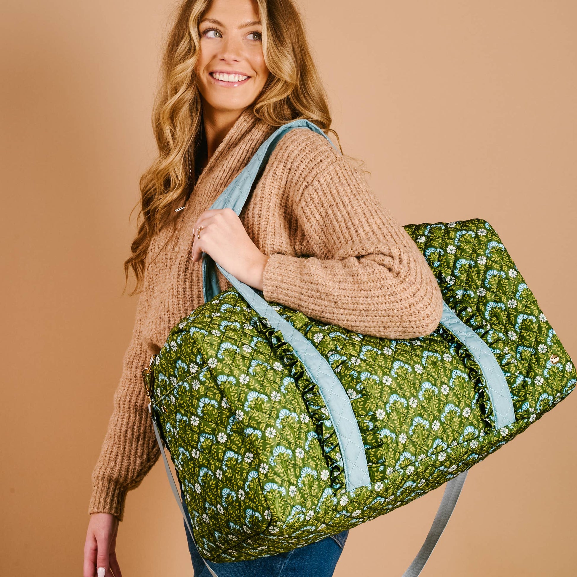 Ready for your next adventure? Our On-the-Go Quilted Weekender Bag is the perfect blend of spaciousness and style, designed for all your travel needs! Crafted from soft, quilted fabric, this bag features roomy interior and exterior pockets to keep your essentials organized. The signature darling wipeable lining makes it easy to clean, while the adjustable shoulder strap and pass-through trolley sleeve ensure travel convenience. Soft, quilted, high quality fabric Interior and exterior pockets Signature darling wipeable interior lining Adjustable shoulder strap included Pass through trolley sleeve for convenient travel dims: 22.5"l x 11"w x 11.5"h