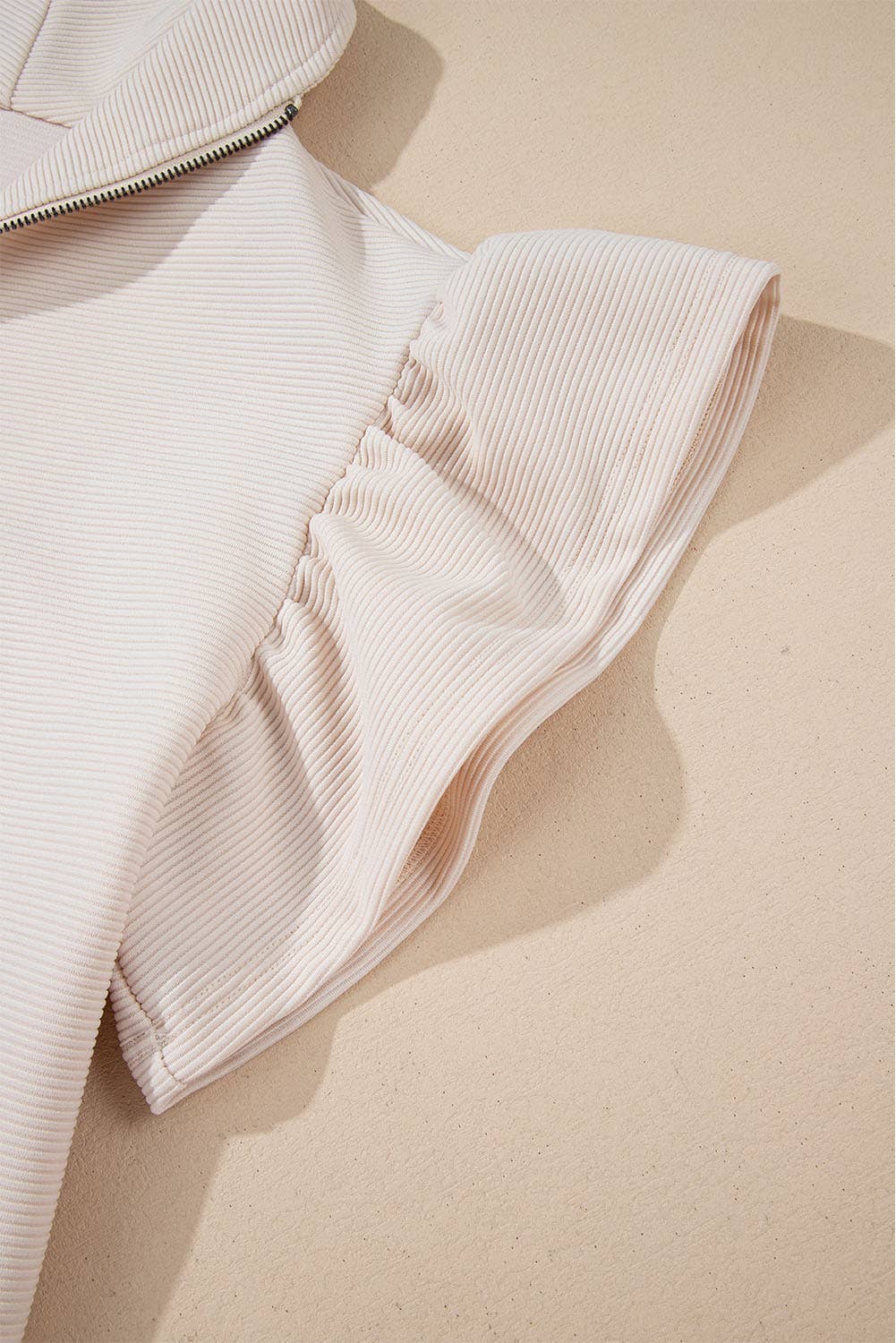 Introducing our stylish women's lounge set, designed for ultimate comfort and chic relaxation. This set features a short ruffle sleeve top that adds a playful touch to your casual look, complete with a convenient quarter zip that allows for adjustable coverage. The soft fabric drapes beautifully, making it perfect for lounging at home or running errands.