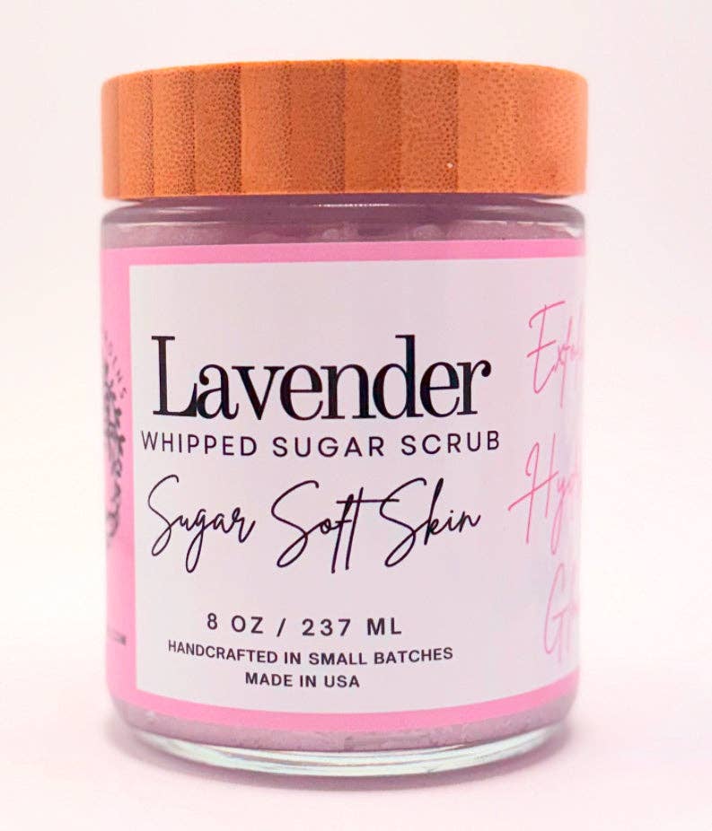 Indulge in the soothing, spa-like experience of our Garden-Grown Lavender Whipped Sugar Scrub. Infused with the calming essence of lavender flowers, hand-harvested from our garden, this luxurious scrub gently exfoliates and nourishes your skin, leaving it soft, smooth, and hydrated.